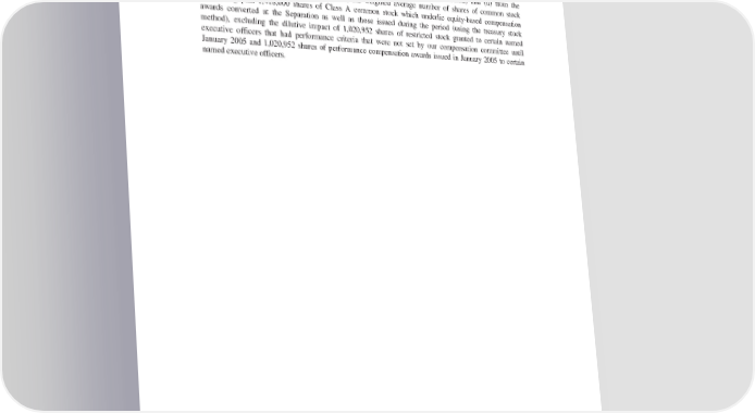 of Class A common stock which underlie equity based compensation awards converted at the Separation. For the year ended December 31, 2004, the pro forma diluted share amount is calculated using the weighted average of: (i) from January 1, 2004 through the Separation Date, the number of shares of common stock outstanding immediately following the Separation, but not including the shares issued in our initial public offering, plus the impact of 487,000 shares of Class A common stock which underlie equity based compensation awards converted at the Separation (using the treasury stock method) and (ii) from the Separation Date through December 31, 2004, the weighted average number of shares of common stock outstanding plus 1,418,000 shares of Class A common stock which underlie equity-based compensation awards converted at the Separation as well as those issued during the period (using the treasury stock method), excluding the dilutive impact of 1,020,952 shares of restricted stock granted to certain named executive officers that had performance criteria that were not set by our compensation committee until January 2005 and 1,020,952 shares of performance compensation awards issued in January 2005 to certain namedexecutive officers. 43