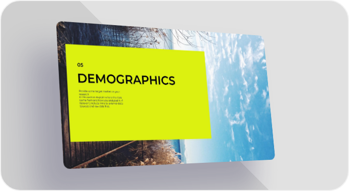 05 DEMOGRAPHICS Provide some target market on your research In this section. Explain where the data Come from and how you analyzed it. If Relevant, include links to external data Sources and raw data files.