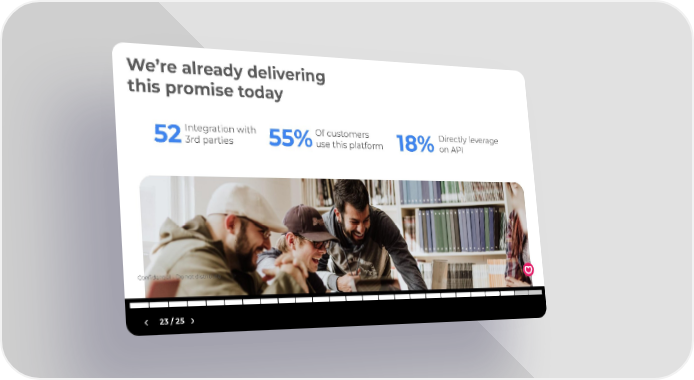 Front Template Page 22 Page 24We’re already delivering this promise today Integration with Of customers Directly leverage 523rd parties 55%use this platform 18%on API Confidential - Do not distribute 23 / 25