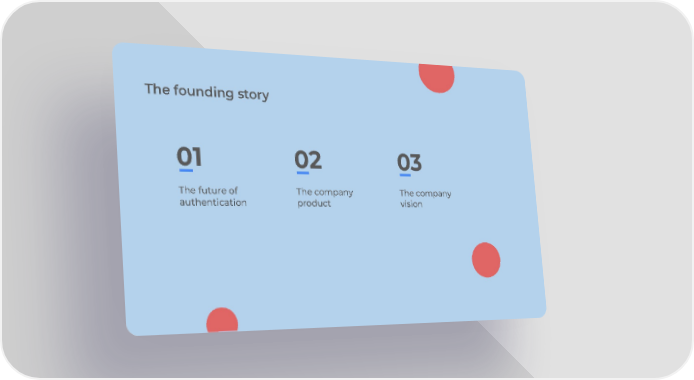 The founding story 01 02 03 The future of The company The company authentication product vision