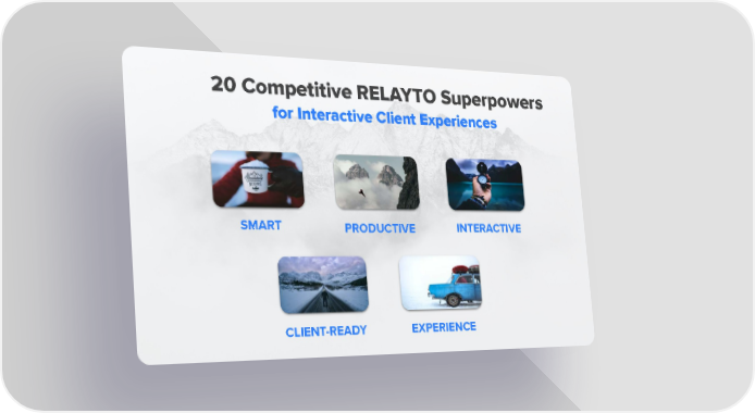 20 Competitive RELAYTO Superpowers for Interactive Client Experiences SMART INTERACTIVE PRODUCTIVE EXPERIENCE CLIENT-READY EXPERIENCE