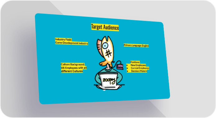 Target Audience Industry Field: Game Development Industry Primary Language: English Positions: Culture Background: ● New Employees US Employees with all ● Current Employees different Cultures ● Decision Makers