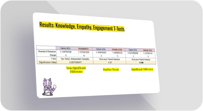 Results: Knowledge, Empathy, Engagement T-Tests Non-Significant Positive Trend Significant Di昀昀erence Di昀昀erence