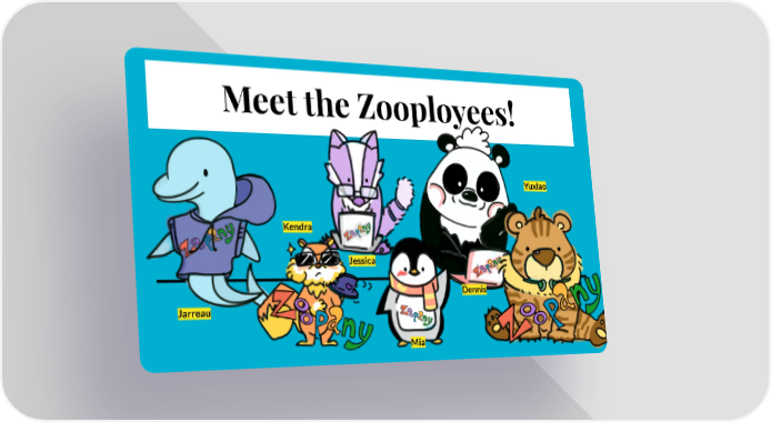 Meet the Zooployees! Yuxiao Kendra Jessica Dennis Jarreau Mia Zoopany Final Presentation Page 1 Page 3