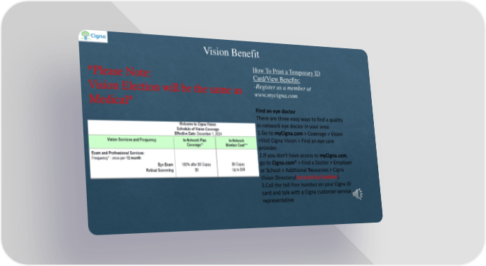 Image result for cigna logo Vision Benefit How To Print a Temporary ID *Please Note: Card/View Benefits: Vision Election will be the same as -Register as a member at www.mycigna.com Medical* Find an eye doctor There are three easy ways to find a quality in-network eye doctor in your area: 1.Go to myCigna.com > Coverage > Vision >Visit Cigna Vision > Find an eye care provider. 2.If you don’t have access to myCigna.com, go to Cigna.com® > Find a Doctor > Employer or School > Additional Resources > Cigna Vision Directory(Serviced by EyeMed). 3.Call the toll-free number on your Cigna ID card and talk with a Cigna customer service representative