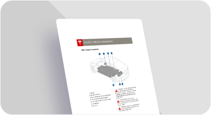 book.book Page 2 Friday, July 19, 2013 12:53 PM Electric Vehicle Components Electric Vehicle Components CElHectARriGcI VNGehicle Components High Voltage Components 1. Battery WARNING: The high voltage system has 2. DC-DC converter no user serviceable parts. Do not 3. High voltage cabling (colored orange) disassemble, remove or replace high voltage 4. 10 kW on-board master charger components, cables or connectors. High voltage cables are colored orange for easy 5. OPTIONAL: 10 kW on-board charger identification. 6. Charge port WARNING: Read and follow all 7. Drive unit instructions provided on the labels that are attached to Model S. These labels are there for your safety. WARNING: In the unlikely event that a fire occurs, immediately contact your local fire emergency responders. 6.2 MODEL S OWNERS MANUAL