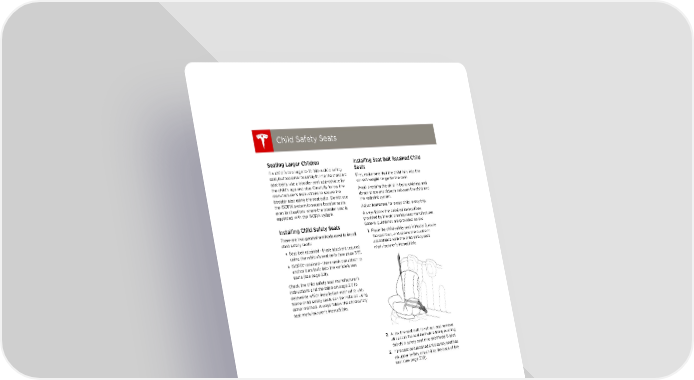 book.book Page 8 Friday, July 19, 2013 12:53 PM Child Safety Seats Child Safety Seats Seating Larger Children Installing Seat Belt Retained Child If a child is too large to fit into a child safety Seats seat, but too small to safely fit into the standard First, make sure that the child falls into the seat belts, use a booster seat appropriate for correct weight range for the seat. the child’s age and size. Carefully follow the Avoid dressing the child in bulky clothing and manufacturer’s instructions to secure the do not place any objects between the child and booster seat using the seat belts. Do not use the restraint system. the ISOFIX system to secure booster seats, even in situations where the booster seat is Adjust harnesses for every child, every trip. equipped with the ISOFIX system. Always follow the detailed instructions provided by the child safety seat manufacturer. Installing Child Safety Seats General guidelines are provided below. There are two general methods used to install 1. Place the child safety seat in ModelS, route child safety seats: the seat belt, and secure the buckle in • Seat belt retained - these seats are secured accordance with the child safety seat using the vehicle’s seat belts (see page 3.8). manufacturer’s instructions. • ISOFIX* retained - these seats can attach to anchor bars built into the vehicle’s rear seats (see page 3.9). Check the child safety seat manufacturer’s instructions and the table on page 3.7 to determine which installation method to use. Some child safety seats can be installed using either method. Always follow the child safety seat manufacturer’s instructions. 2. Allow the seat belt to retract, and remove all slack in the seat belt while firmly pushing the child safety seat into the ModelS seat. 3. If the seat belt retained child safety seat has an upper tether, attach it to the back of the seat (see page 3.10). 3.8 MODEL S OWNERS MANUAL