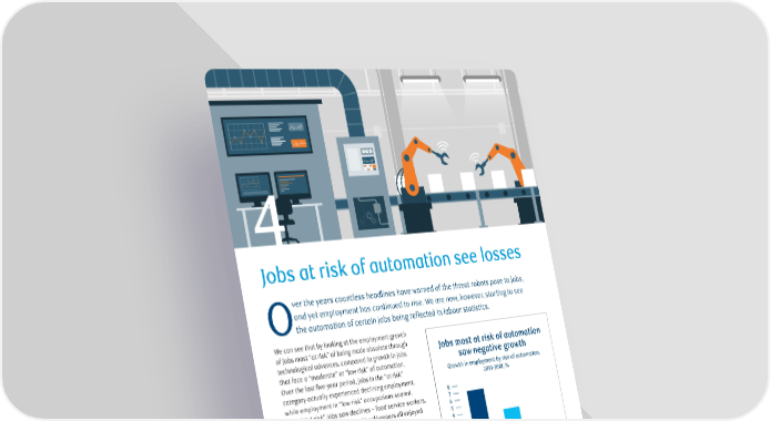 4 Jobs at risk of automation see losses ver the years countless headlines have warned of the threat robots pose to jobs, and yet employment has continued to rise. We are now, however, starting to see Othe automation of certain jobs being reflected in labour statistics. We can see that by looking at the employment growth of jobs most “at risk” of being made obsolete through Jobs most at risk of automation technological advances, compared to growth in jobs saw negative growth that face a “moderate” or “low risk” of automation. Over the last five-year period, jobs in the “at risk” Growth in employment by risk of automation, category actually experienced declining employment, 2013-2018, % while employment in “low risk” occupations soared. 8 Not all “at risk” jobs saw declines – food service workers, 7 administrative assistants and bookkeepers all enjoyed 6 5 strong employment growth. Still, we see no reason to 4 expect this broader transformation of the job market 3 to reverse. 2 1 The thing to remember is that automation of jobs 0 doesn’t mean jobs are going away. While new technol- -1 Low Risk Moderate Risk High Risk ogies can disrupt employment by replacing workers directly, it can also reduce costs and drive expansions such that overall employment grows. What’s needed Source: Statistics Canada, RBC Economics Research, is for policy makers to play a greater role in helping and Frey and Osborne (2017) workers through this adjustment, with more resources put towards education and training to help mitigate the disruptive effects of automation. RBC Economics Research | Navigating 2019 - 9 big insights for the year ahead | January 2019 13