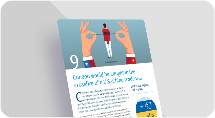 9 Canada would be caught in the crossfire of a U.S.-China trade war oncerns about Canada’s most important trade rela- 2017 Global Exports tionship eased when the USMCA deal was struck in and Imports Clate September. It’s true that bilateral irritants remain and the USMCA has yet to be ratified. Nonetheless, the focus in Canada has shifted to possible repercussions from the escalating trade spat between the U.S. and China. The good news, if it can be called that, is that the U.S. administration is U.S. $5.3 developing a reputation for ramping up rhetoric in disputes before ultimate- trillion ly agreeing to a “new” deal with relatively minor tweaks. We saw that with the talks to update NAFTA. As it stands, the administration and China have agreed to a trade war truce to start the year. And while the US$360-billion of China $4.6 U.S.-China bilateral trade that has already been targeted with tariffs is an trillion eye-catching number, it pales in the global context. U.S. exports and imports totaled about US$5.3 trillion in 2017; for China, it was US$4.6 trillion. Yet a meaningful escalation in the U.S.-China trade dispute can’t be ruled out. The impact on Canada would be mixed, but tilted to the downside. Model simulations from the IMF’s latest World Economic Outlook have even shown some potential near-term benefits to Canada and Mexico, as Chinese and U.S. businesses and households shift trade to other partners. That would please Canadian exporters looking to develop more significant trading relationships with China. RBC Economics Research | Navigating 2019 - 9 big insights for the year ahead | January 2019 22