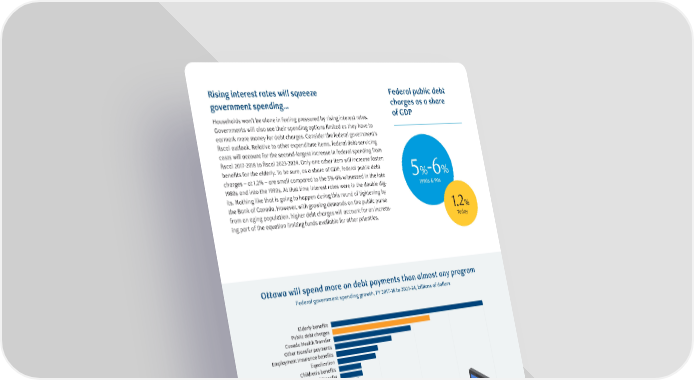 Rising interest rates will squeeze Federal public debt government spending… charges as a share Households won’t be alone in feeling pressured by rising interest rates. of GDP Governments will also see their spending options limited as they have to earmark more money for debt charges. Consider the federal government’s fiscal outlook. Relative to other expenditure items, federal debt-servicing costs will account for the second-largest increase in federal spending from fiscal 2017-2018 to fiscal 2023-2024. Only one other item will increase faster: benefits for the elderly. To be sure, as a share of GDP, federal public debt charges – at 1.2% – are small compared to the 5%-6% witnessed in the late 5%-6% 1980s and into the 1990s. At that time interest rates were in the double dig- 1980s & 90s its. Nothing like that is going to happen during this round of tightening by the Bank of Canada. However, with growing demands on the public purse from an aging population, higher debt charges will account for an increas- 1.2% ing part of the equation limiting funds available for other priorities. Today Ottawa will spend more on debt payments than almost any program Federal government spending growth, FY 2017-18 to 2023-24, billions of dollars Elderl enefits €ulic det charges Canada Health Transfer ther transfer pa ments Emplo ment nsurance enefits Eualiation Children’s enefits Canada Social Transfer perating expenses Home care and mental health Territorial Formula Financing Gas Tax Fund 0 5 10 15 20 Source: Department of Finance, RBC Economics Research Source: Department of Finance, RBC Economics Research RBC Economics Research | Navigating 2019 - 9 big insights for the year ahead | January 2019 9