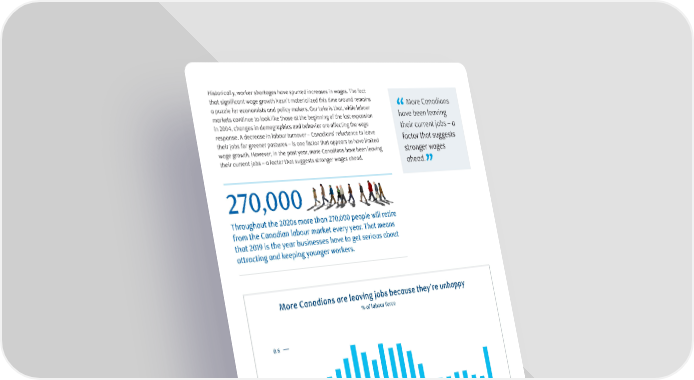 Historically, worker shortages have spurred increases in wages. The fact that significant wage growth hasn’t materialized this time around remains More Canadians a puzzle for economists and policy makers. Our take is that, while labour “ markets continue to look like those at the beginning of the last expansion have been leaving in 2004, changes in demographics and behavior are affecting the wage their current jobs – a response. A decrease in labour turnover – Canadians’ reluctance to leave factor that suggests their jobs for greener pastures – is one factor that appears to have limited wage growth. However, in the past year, more Canadians have been leaving stronger wages their current jobs – a factor that suggests stronger wages ahead. ahead.” 270,000 Throughout the 2020s more than 270,000 people will retire from the Canadian labour market every year. That means that 2019 is the year businesses have to get serious about attracting and keeping younger workers. More Canadians are leaving jobs because they’re unhappy % of labour force 0.6 0.5 0.4 0.3 1997 1998 1999 2000 2001 2002 2003 2004 2005 2006 2007 2008 2009 2010 2011 2012 2013 2014 2015 2016 2017 2018 Year to date Unemployed people who left their jobs because they were ‘dissatisfied’ as % of labour force Source: Statistics Canada, RBC Economics Research RBC Economics Research | Navigating 2019 - 9 big insights for the year ahead | January 2019 12