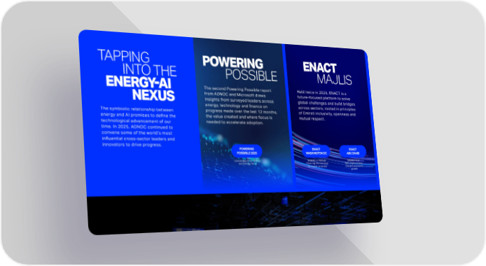 TAPPING INTO THE ENERGY-A I NEXUS POWERING POSSIBLE ENACT MAJLIS The symbiotic relationship between energy and AI promises to define the technological advancement of our time. In 2025, ADNOC continued to convene some of the worlds most influential cross-sector leaders and innovators to drive progress. The second Powering Possible report from ADNOC and Microsoft draws insights from surveyed leaders across energy, technology and finance on progress made over the last 12 months, the value created and where focus is needed to accelerate adoption. Unleashing AI for Energy and Energy for AI ENERGY-AI NEXUS: Powering the next leap for human progress ENERGY & AI: Twin engines Turbo- charging economic growth Held twice in 2025, ENACT is a future-focused platform to solve global challenges and build bridges across sectors, rooted in principles of Emirati inclusivity, openness and mutual respect. POWERING POSSIBLE 2025 ENACT WASHINGTON DC ENACT ABU DHABI
