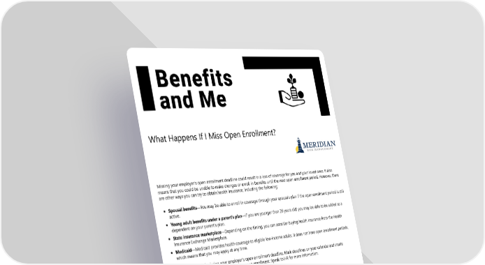 What Happens If I Miss Open Enrollment? Missing your employer’s open enrollment deadline could result in a loss of coverage for you and your loved ones. It also means that you could be unable to make changes or enroll in benefits until the next open enrollment period. However, there are other ways you can try to obtain health insurance, including the following: Spousal benefits—You may be able to enroll in coverage through your spouse’s plan if the open enrollment period is still active. Young adult benefits under a parent’s plan—If you are younger than 26 years old, you may be able to be added as a dependent on your parent’s plan. State insurance marketplace—Depending on the timing, you can consider buying health insurance from the Health Insurance Exchange Marketplace. Medicaid—Medicaid provides health coverage to eligible low-income adults. It does not have open enrollment periods, which means that you may apply at any time. Be proactive to avoid missing your employer’s open enrollment deadline. Mark deadlines on your calendar and create reminders on your phone so you do not miss open enrollment. Speak to HR for more information. What to Know About Newborn Health Coverage Welcoming a newborn into your family is a joyous occasion that also comes with significant responsibilities. You should know that your health care coverage won’t necessarily extend to your newborn. For the first 30 days, newborns are generally covered under their mother’s policies. However, this coverage ends on the 31st day after birth. Failing to add your child to your health care plan means they won’t be insured. This could leave you vulnerable to high and unexpected medical bills. Fortunately, childbirth and adoption are both qualifying life events. You can add your newborn or recently adopted child to your health care plan without waiting for open enrollment. To enroll your infant, contact HR to let them know you had a baby and would like to add them to your plan. What Is a Premium? Health insurance is a vital component of modern health care, providing individuals and families with financial protection against the high costs of medical treatment. Understanding your health insurance premium can help you manage your health care costs and plan your annual budget. A health insurance premium is the amount you must pay to keep your health insurance policy active. In return for your premium payment, your health plan covers a portion of your health care expenses as outlined in your health insurance policy, shielding you from the financial strain of costly medical expenses. The cost of your health insurance premium may vary with certain factors such as your age, medical history, gender, location, coverage type and amounts, and the number of dependents on your plan.