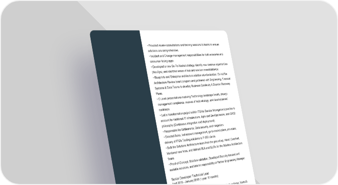 • Provided review consultations and training sessions to teams to ensure solutions are comprehensive. • Incident and Change management responsibilities for both enterprise and consumer-facing apps. • Developed a new Go-To-Market strategy, identify new revenue opportunities (RevOps), and identified areas of tool and solution consolidation(s). • Blueprints and Enterprise architecture solution standardization; Co-led the Architecture Review board program and partnered with Engineering, Financial Systems & Data Teams to develop Business Continuity & Disaster Recovery Plans. • C Level presentations involving Technology landscape health, change management compliance, reviews of tech strategy, and developmental roadmaps. • Led a transformation project within ITG for Service Management practice to account for traditional IT infrastructure, Agile and DevOps teams, and CI/CD philosophy (Continuous integration and deployment). • Responsible for Entitlements, Data security, and integration. • Directed Sales, led account management, go-to-market plans, pre-sales, delivery of ITG's Trading solutions to F-500 clients. • Built the Solutions Architecture team from the ground-up; Hired, Coached, Mentored new hires, and defined SLA and SLO's for the Solution Architecture Team. • Proof-of-Concept, Solution validation, Developed Security-focused and scalable solutions, and interim responsibility of Partner Engineering Manager. Senior Developer Technical Lead April 2016 - January 2018 (1 year 10 months) New York Technology: SharePoint 2010/2013, Office 365, .NET, TypeScript, NodeJS, JavaScript, CSOM, SQL Server 2012/2014, Nintex Workflows, Nintex Forms, SSRS, Power BI, Excel Services, Azure, ITSM, HEAT, Reporting Services, CRM, TIDAL, NodeJS, TypeScript, CSS, CSS3. Migration: Metalogix Logging: Splunk • Developed Web applications on WebStack framework using NodeJS, TypeScript, JavaScript. • Developed custom SQL Server Reporting Services (SSRS) reports/ Power BI/ Power View Reports. Page 8 of 13