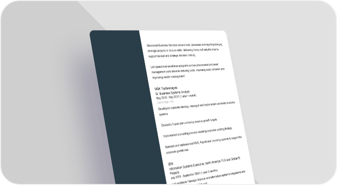 Structured Business Services around tools, processes and reporting bringing strategic projects to closure while delivering timely and valuable data to support tactical and strategic decision making Led operational excellence programs across procurement and asset management work streams reducing costs, improving asset utilization and improving vendor management MÄK Technologies Sr. Business Systems Analyst May 2010 - May 2011 (1 year 1 month) Cambridge, MA Developed corporate strategy, managed and implemented worldwide business systems Created a 3-year plan achieving revenue growth targets Implemented accounting process resolving corporate auditing findings Selected and implemented HRIS, Payroll and Licensing systems to support the corporate growth rate IBM Information Systems Executive, North America IT/IS and Global IS Projects July 2008 - September 2009 (1 year 3 months) Led worldwide Telelogic financial and information system’s integrations and conversions. Managed IT/IS staff Analyzed, revised and implemented alternate solutions for existing IBM processes ensuring projects and programs were delivered on-time and on- budget throughout the integration phase Developed and managed integrations and conversions, on a worldwide basis from Telelogic enterprise systems to IBM enterprise systems including hardware, software and business processes Telelogic VP, IT/IS March 2006 - July 2008 (2 years 5 months) Page 7 of 9