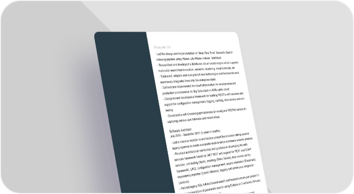 Emeryville, CA - Led the design and implementation of “Near Real Time” Semantic Search Indexing pipeline using HBase, Lily HBase Indexer, SolrCloud - Researched and developed a distributed visual search engine which supports multi-color search/harmonization, semantic clustering, visual similarity, etc - Evaluated, adopted and evangelized new technologies and frameworks and seamlessly integrated them into the enterprise stack. - Defined and implemented the cloud infrastructure for development and production environments for Big Data stack in AWS public cloud - Designed and developed a framework for building RESTful API services with support for configuration management, logging, caching, data access and unit testing - Developed a self-directed graph database (in neo4j) and RESTful service for capturing various user interests and relationships. Software Architect July 2006 - December 2011 (5 years 6 months) - Led a massive website re-architecture project that involved retiring several legacy systems to create a scalable multi-tenant e-commerce website platform. - Provided architectural mentorship and guidance in developing the web- services framework based on .NET WCF with support for REST and SOAP services, unit testing (Nunit), mocking (Rhino Mocks), data service (entity framework), LINQ, configuration management, aspect orientation (Postsharp), dependency injection (Castle Windsor), logging and continuous integration (Jenkins). - Retired legacy SQL full-text based search and headed a multi-year project in the implementation of parametric search using Endeca on 3 websites (Art.com, Allposters.com and ArtistRising.com). - Designed a scalable event-driven framework for automated keyword generation service for SEM, currently supporting more than 100 billion keywords and 50 geo-targets. AllPosters.com Sr. Programmer Analyst October 2004 - June 2006 (1 year 9 months) Emeryville, CA - Designed and developed several end-to-end features of the website (multi- language support, cross-selling module, gallery page redesign, etc.) in ASP.NET webforms. Page 3 of 5