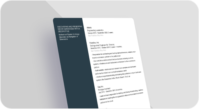 DISCOVERING AND PRESENTING Airbnb DÉCOR HARMONIZED WITH A Engineering Leadership DÉCOR STYLE October 2019 - September 2022 (3 years) Method and System for Image San Francisco Bay Area Discovery via Navigation of Dimensions Fanatics, Inc. Distinguished Engineer (Sr. Director) December 2015 - October 2019 (3 years 11 months) San Francisco Bay Area - Responsible for architecting and building high performance, resilient, multi- tenant e-commerce platform in the public cloud - Own and drive end-to-end architecture decisions including solutions, systems, infrastructure and deployment architecture for the e-commerce platform - Built scalable, reliable and fault tolerant micro services and distributed platforms that thrive in an eventual consistency world - Hands-on experience building and scaling data platforms on top of distributed systems like Cassandra, Kafka, Elastic Search, Druid, etc Gap Inc. Principal Architect July 2015 - December 2015 (6 months) - Lead architect responsible for defining and driving the technology roadmap initiatives for building the next generation micro-services based ecommerce platform in the cloud Art.com 9 years Principal Architect January 2014 - June 2015 (1 year 6 months) Emeryville, CA - Tech lead on the art.com labs initiative to transform innovative concepts/ ideas to working scalable products - Led the design, development and production roll-out of a large scale stream processing engine to compute trend aggregations on clickstream data using Spark (Spark Streaming) - Implemented an end-to-end clickstream analytics platform on Hadoop using Apache Flume, Apache Crunch, Apache Oozie, Hive and Impala Sr. Software Architect January 2012 - December 2013 (2 years) Page 2 of 5