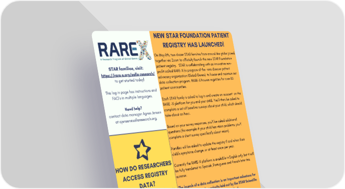 NEW STAR FOUNDATION PATIENT REGISTRY HAS LAUNCHED! On May 8th, two dozen STAR families from around the globe joined together via Zoom to officially launch the new STAR Foundation patient registry. STAR is collaborating with an innovative non- STAR families, visit: profit called RARE-X (a program of the rare disease patient https://rare-x.org/salla-research/ advocacy organization Global Genes) to house and maintain our to get started today! data collection program. RARE-X houses registries for over 80 patient communities. This log in page has instructions and FAQ’s in multiple languages. Each STAR family is asked to log in and create an account on the RARE -X platform for you and your child. You’ll then be asked to Need help? complete a set of baseline surveys about your child, which should contact data manager Agnes Jensen take about an hour. at ajensen@sallaresearch.org. Based on your survey responses, you’ll be asked additional questions (for example if your child has vision problems, you’ll complete a short survey specifically about vision). Families will be asked to update the registry if and when their child’s symptoms change, or at least once per year. HOW DO RESEARCHERS Currently the RARE-X platform is available in English only, but it will be fully translated to Spanish, Portuguese and French later this ACCESS REGISTRY summer. DATA? Researchers around the globe may The launch of a data collection is an important milestone for us and has been a key priority laid out by the STAR Scientific access de-identified registry data Advisory Board - thank you for participating! from both STAR and other patient advocacy organizations (each The data collected will be available to researchers around the individual family provides consent). world (in a de-identified way - each family’s name/identify are Requests are vetted and handled ‘masked’ so your survey answers cannot be tied back to you by RARE-X -- NOT the STAR specifically!) Foundation. Clinicians and researchers The registry is for Salla patients of all ages (child to adult). EVERY family‘s input is valued and appreciated! interested in learning more should go to: https://rare-x.org/researchers/ www.sallaresearch.org Page 2 of 8