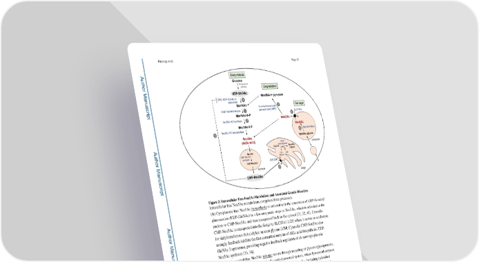 Huizing et al. Page 24 A uthor Man uscr ipt A uthor Man uscr ipt Figure 2: Intracellular Free Neu5Ac Metabolism and Associated Genetic Disorders Intracellular free Neu5Ac metabolism comprises three processes: (A) Cytoplasmic free Neu5Ac biosynthesis is initiated with the conversion of UDP-N-acetyl A glucosamine (UDP-GlcNAc) in a few enzymatic steps to Neu5Ac, which is activated in the uthor Man nucleus to CMP-Neu5Ac and then transported back to the cytosol [31, 32, 40]. Cytosolic CMP-Neu5Ac is transported into the Golgi by SLC35A1 [129] where it serves as a substrate for sialyltransferases that sialylate nascent glycans [130]. Cytosolic CMP-Neu5Ac also strongly feedback-inhibits the first committed enzyme of sialic acid biosynthesis, UDP- uscr GlcNAc 2 epimerase, providing negative feedback regulation of de novo cytoplasmic ipt Neu5Ac synthesis [33, 34]. (B) Intralysosomal free Neu5Ac salvage occurs through recycling of glycans (glycoproteins, gangliosides) through endocytosis by the endo-lysosomal system, where lysosomal enzymes degrade the glycans into their individual building block molecules, including individual monosaccharides. Free Neu5Ac is released from glycans by neuraminidase enzymes [84, 86]. Neu5Ac is then transported from the lysosomal lumen into the cytosol by SLC17A5 [1]. A (C) The fate of salvaged free Neu5Ac in the cytoplasm is unclear. A portion may be excreted uthor Man from the cell, recycled in the Neu5Ac biosynthesis pathway for direct synthesis of CMP- Neu5Ac, or degraded/catabolized by N-acetylneuraminate pyruvate lyase (NPL) [38] into ManNAc and pyruvate. The ManNAc generated in the cytoplasm can either directly re-enter the Neu5Ac biosynthesis pathway or can be converted to N-acetylglycosamine (GlcNAc) for uscr entry in the hexosamine pathway [38]. ipt Several rare genetic disorders are associated with these pathways: (1) GNE myopathy (MIM#605820; ~950 reported cases [131]); (2) N-acetylneuraminic acid phosphate synthase Neurosci Lett. Author manuscript; available in PMC 2021 June 11.