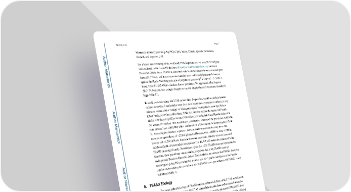 Huizing et al. Page 7 Mennonite (homozygous for p.Arg39Cys) [66], Italian, Danish, Spanish, Dominican, A uthor Man Kurdish, and Japanese [11]. For a better understanding of the worldwide FSASD prevalence, we used SLC17A5 gene variants listed in the GnomAD database (https://gnomad.broadinstitute.org/; accessed uscr December 2020). Since FSASD is associated with bi-allelic variants in one autosomal gene locus (SLC17A5), and assuming random mating in an indefinitely large population, we ipt 2 2 applied the Hardy-Weinberg principle of population genetics (p + 2pq + q = 1; Table 3, Supp. Table S1) [67–69] to calculate disease prevalence. We aggregated all pathogenic SLC17A5 variants into a single category to use this simple binomial expression (detailed in Supp Table S1). To avoid over-estimating SLC17A5 variant allele frequencies, we did not include intronic A variants more than 2 nucleotides away from exon boundaries, synonymous variants, or any uthor Man missense variant with a ‘benign’ or ‘likely pathogenic’ pathogenicity score (per Variant Effect Predictor in GnomAD) (Supp. Table S1). We also omitted the number of Finnish alleles with the p.Arg39Cys variant (149 alleles), but we included non-Finnish alleles with this variant (79 alleles). This resulted in a conservative estimate of the prevalence of FSASD uscr to be at least 3 per 1,000,000, with a carrier rate of 1/286 individuals (heterozygotes) (Table ipt 3). Assuming this database represents the worldwide population diversity, these data translate to a prevalence of ~23,000 global FASD cases, with ~13,000 in Asia, ~2,000 in Europe and ~1,700 in North America. However, embryonic lethality of severe cases and childhood death of intermediate severe cases [14, 44, 49] will reduce the number of living FSASD cases significantly. Nevertheless, given that ~200 FSASD cases are reported in the literature, these prevalence values confirm suspicions that many FSASD cases go A undiagnosed. Based on GnomAD data of Finnish alleles, we estimate that FSASD due to the uthor Man homozygous p.Arg39Cys variant has a carrier rate of ~1 per 84 individuals in the Finnish population, translating to a prevalence of ~35 FSASD cases per million (~190 FSASD cases) in Finland (Table 3). uscr 6. FSASD Etiology ipt The exact pathophysiology of FSASD remains unknown. Effects of SLC17A5 mutations on sialic acid transport activity, SLC17A5 intracellular localization, and amount of stored free sialic acid have been directly correlated with disease severity and survival [19,83,85]. Loss of function of SLC17A5 due to FSASD-associated mutations was demonstrated by utilizing the SLC17A5 N-terminal dileucine lysosomal targeting motif, DRTPLL (Fig 3) [4, 70]. Newly synthesized SLC17A5 traffics to the plasma membrane, from where it is rapidly A internalized to the endo-lysosomal system by coat proteins recognizing the dileucine uthor Man targeting motif [4]. Expression of SLC17A5 with an altered targeting motif results in plasma membrane expression, allowing for the use of whole cell uptake assays to measure transport activity and intracellular localization [4, 59, 71, 72]. While missense variants associated with uscr more severe phenotypes had absent sialic acid transport activity, the variants associated with a milder phenotype (p.Arg39Cys, p.Lys136Glu) had residual transport activity [4, 59, 71]. ipt Some variants also showed partial Golgi retention [72, 73] or endoplasmic reticulum (ER) retention [59]. These findings confirmed an SLC17A5 loss of function disease mechanism Neurosci Lett. Author manuscript; available in PMC 2021 June 11.