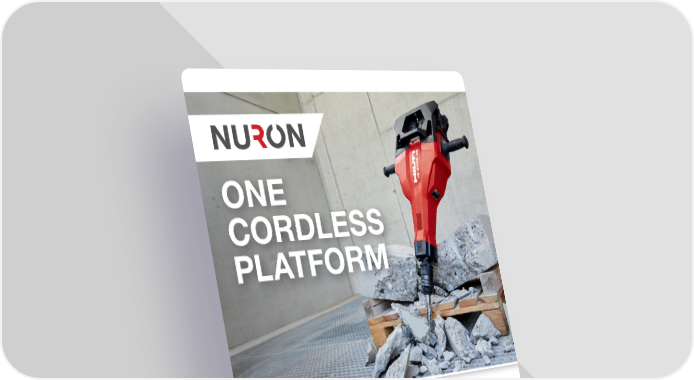 ONE CORDLESS PLATFORM Nuron will redefine the way you work — and directly impact your bottom line. hether you’re new to Hilti or considering an LONGER POWER-PACKED DURABILITY STREAMLINE YOUR upgrade to Nuron, this all-on-one platform RUN TIMES PERFORMANCE AND SAFETY TOOL CRIB AND Wcan maximize your productivity and help take JOBSITE MANAGEMENT charge of the most demanding projects so you can start A fully compatible platform that enables The groundbreaking new battery All Nuron tools and batteries come and finish jobs faster. optimization of your tool crib, you can technology packs unmatched power with improved durability and more We’re here to help simplify your day- count on higher efficiency than corded or and performance for demanding jobs built-in safety features to help to-day. All Nuron tools are designed A connected cordless platform to handle the broadest gas-powered tools, helping your teams like breaking concrete, serial drilling withstand the harshest conditions, with integrated data-driven services range of light- to heavy-duty construction jobs and work with more work-per-charge, more into tough materials, and grinding and keep your crews safe, and reduce that help maintain tool and battery projects, Nuron has you covered. speed and less downtime. cutting metal. risks that contribute to unnecessary health while minimizing downtime and costs and delays on your jobsites. the burden of managing repairs. CLICK TO LEARN MORE