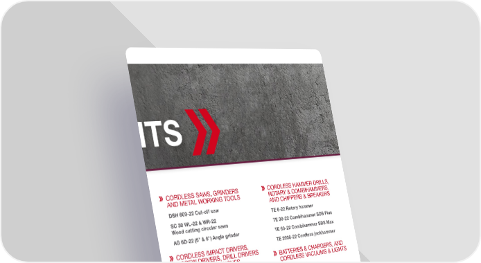 CONTENTS NURON: ONE CORDLESS SAWS, GRINDERS CORDLESS HAMMER DRILLS, CORDLESS PLATFORMAND METAL WORKING TOOLS ROTARY & COMBIHAMMERS, DSH 600-22 Cut-off saw AND CHIPPERS & BREAKERS HELP STREAMLINE TE 6-22 Rotary hammer YOUR DAY-TO-DAYSC 30 WL-22 & WR-22 Wood cutting circular saws TE 30-22 Combihammer SDS Plus BATTERIES WITHOUT AG 6D-22 (5" & 6") Angle grinderTE 60-22 Combihammer SDS Max COMPROMISE TE 2000-22 Cordless jackhammer CORDLESS IMPACT DRIVERS, SCREW DRIVERS, DRILL DRIVERS BATTERIES & CHARGERS, AND AND IMPACT WRENCHES CORDLESS VACUUMS & LIGHTS SID 6-22 Impact driver VC 140-2-22 Vacuum SIW 8-22 ½" Impact wrench CORDLESS BATTERY-ACTUATED WORLD’S FIRST CORDLESS NAILERS, PRESS TOOLS, SAFESET SYSTEM CUTTERS, CRIMPERS & UPGRADE TO NURON KNOCKOUTS BX 3-22 Cordless concrete nailer (Interior Finishing) BX 3 ME-22 Cordless concrete nailer (Mechanical and Electrical)