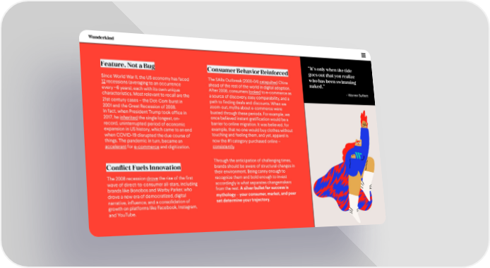 “It’s only when the tide Feature, Not a Bug Consumer Behavior Reinforced goes out that you realize The SARs Outbreak (2000-04) catapultedChina who has been swimming Since World War II, the US economy has faced naked.” 12recessions (averaging to an occurrence ahead of the rest of the world in digital adoption. every ~6 years), each with its own unique After 2008, consumers lookedto e-commerce as - Warren Buffett characteristics. Most relevant to recall are the a source of discovery, easy comparability, and a 21st century cases –the Dot-Com burst in path to finding deals and discounts. When we 2001 and the Great Recession of 2008. zoom-out, myths about e-commerce were In fact, when President Trump took office in busted through these periods. For example, we 2017, he inherited the single longest, on- once believed instant gratification would be a record, uninterrupted period of economic barrier to online migration. It was believed, for expansion in US history, which came to an end example, that no one would buy clothes without when COVID-19 disrupted the due course of touching and feeling them, and yet, apparel is things. The pandemic in turn, became an now the #1 category purchased online – accelerantfor e-commerceand digitization. consistently. Through the anticipation of challenging times, Conflict Fuels Innovation brands should be aware of structural changes in their environment. Being canny enough to The 2008 recession drovethe rise of the first recognize them and bold enough to invest wave of direct-to-consumer all-stars, including accordingly is what separates changemakers brands like Bonobos and Warby Parker, who from the rest. A silver bullet for success is drove a new era of democratized, digital mythology –your consumer, market, and peer narrative, influence, and a consolidation of set determine your trajectory. growth on platforms like Facebook, Instagram, and YouTube.
