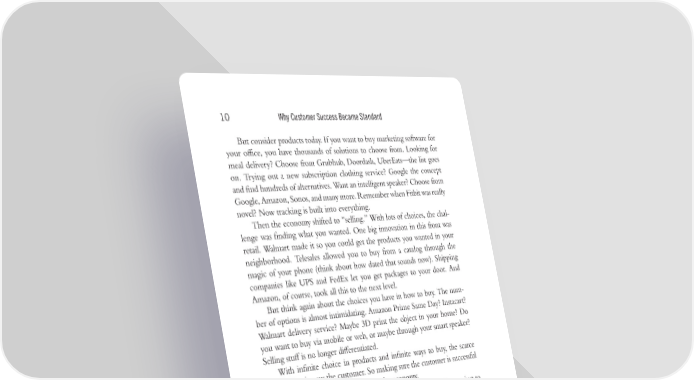 Trim Size: 6in x 9in Mehta572763 c01.tex V1-04/03/2020 11:45pm Page 10 10 WhyCustomerSuccessBecameStandard But consider products today. If you want to buy marketing software for your ofoce, you have thousands of solutions to choose from. Looking for meal delivery? Choose from Grubhub, Doordash, UberEats—the list goes on. Trying out a new subscription clothing service? Google the concept andfind hundreds of alternatives. Want an intelligent speaker? Choose from Google,Amazon,Sonos,andmanymore.RememberwhenFitbitwasreally novel? Now tracking is built into everything. Then the economy shifted to “selling.” With lots of choices, the chal- lenge was finding what you wanted. One big innovation in this front was retail. Walmart made it so you could get the products you wanted in your neighborhood. Telesales allowed you to buy from a catalog through the magic of your phone (think about how dated that sounds now). Shipping companies like UPS and FedEx let you get packages to your door. And Amazon, of course, took all this to the next level. But think again about the choices you have in how to buy. The num- ber of options is almost intimidating. Amazon Prime Same Day? Instacart? Walmart delivery service? Maybe 3D print the object in your home? Do you want to buy via mobile or web, or maybe through your smart speaker? Selling stuff is no longer differentiated. With infinite choice in products and infinite ways to buy, the scarce commodityis now the customer. So making sure the customer is successful isn’t just a job or a strategy—it’s truly the economy. In this first chapter we’ll take a quick look at Customer Success just to establish the basics. ALittle History Lesson: Customer Success vs. Customer Service vs. Account Management Here’s where the shift from old business thinking to current-day practices really comes into focus. Customer Service has always been and continues to be an important part of business. When a customer needs assistance, how can you help them quickly, effectively, and empathetically? Similarly, Account Management in somebusinesses is required to help customers find more ways to do business with the vendor (“sell more stuff”). But Customer Service and Account Management aren’t sufocient. The missing link in the new economy is that the customer makes their