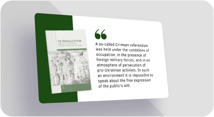 A so-called Crimean referendum was held under the conditions of occupation, in the presence of foreign military forces, and in an atmosphere of persecution of pro-Ukrainian activists. In such an environment it is impossible to speak about the free expression of the public's will.