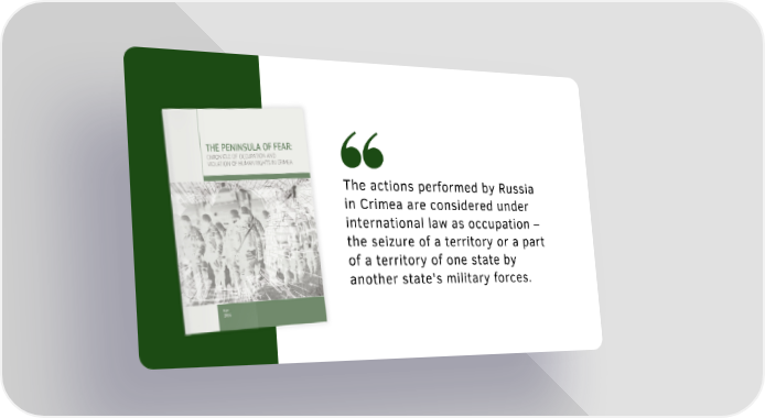 The actions performed by Russia in Crimea are considered under international law as occupation – the seizure of a territory or a part of a territory of one state by another state's military forces.