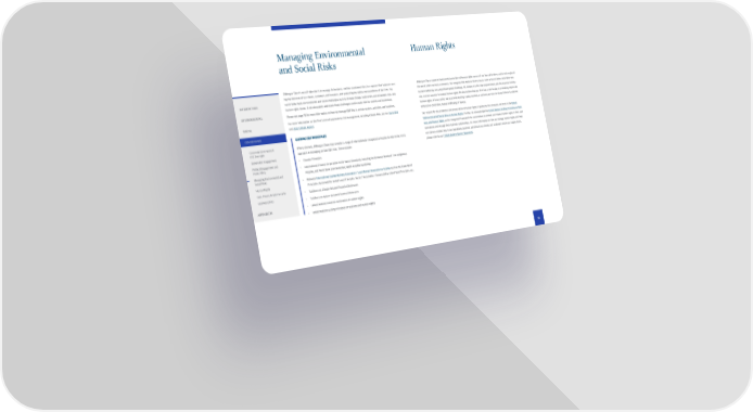 Managing Environmental Human Rights and Social Risks JPMorgan Chase’s overall objective is to manage its business, and the associated risks, in a manner that balances serv- JPMorgan Chase supports fundamental principles of human rights across all our lines of business and in each region of ing the interests of our clients, customers and investors, and protecting the safety and soundness of the Firm. The the world where we have a presence. We recognize that modern slavery issues, such as forced labor, child labor and INTRODUCTION world today faces environmental and social challenges, such as climate change, biodiversity and ecosystem loss, and human trafcking, are a signifcant global challenge. We believe it is the role of government and the business commu- human rights issues. If not adequately addressed these challenges could create risks for society and businesses. nity in every country to protect human rights. We also believe that our Firm has a role to play in promoting respect for human rights. It is our policy not to provide lending, capital markets or advisory services to clients if there is evidence ENVIRONMENTAL Please see page 70 for more information on how we manage E&S Risk in certain sectors, activities, and locations. of forced or child labor, human trafcking or slavery. For more information on the Firm’s overall approach to risk management, including Climate Risk, see our Form 10-K SOCIAL Our respect for the protection and preservation of human rights is guided by the principles set forth in the United and 2022 Climate Report. Nations Universal Declaration of Human Rights. Further, we acknowledge the United Nations Guiding Principles on Busi- GOVERNANCE ness and Human Rights as the recognized framework for corporations to protect and respect human rights in their own GUIDING E&S PRINCIPLES operations and through their business relationships. For more information on how we manage human rights and mod- Corporate Governance & Where relevant, JPMorgan Chase may consider a range of internationally recognized principles to inform the Firm’s ern slavery-related risks in our operations, business activities of our clients and customers and in our supply chain, ESG Oversight approach in managing certain E&S risks. These include: please refer to our FY2021 Modern Slavery Statement. Stakeholder Engagement • Equator Principles Political Engagement and Public Policy • International Finance Corporation Performance Standards, including Performance Standard 7 on Indigenous Managing Environmental and Peoples, and World Bank Environmental, Health & Safety Guidelines Social Risks • Relevant International Capital Markets Association / Loan Market Association principles such as the Green Bond Human Rights Principles, Sustainability Linked Loan Principles, Social / Sustainable / Sustainability Linked Bond Principles, etc. Data Privacy & Cybersecurity • Taskforce on Climate-Related Financial Disclosures Business Ethics • Taskforce on Nature-Related Financial Disclosures APPENDICES • United Nations Universal Declaration of Human Rights • United Nations Guiding Principles on Business and Human Rights 56
