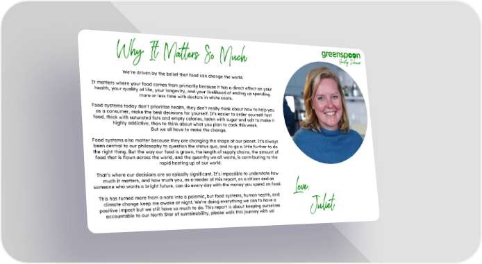 Why It Matters So Much We’re driven by the belief that food can change the world. It matters where your food comes from primarily because it has a direct effect on your health, your quality of life, your longevity, and your likelihood of ending up spending more or less time with doctors in white coats. Food systems today don’t prioritize health, they don’t really think about how to help you as a consumer, make the best decisions for yourself. It’s easier to order yourself fast food, thick with saturated fats and empty calories, laden with sugar and salt to make it highly addictive, than to think about what you plan to cook this week. But we all have to make the change. Food systems also matter because they are changing the shape of our planet. It’s always been central to our philosophy to question the status quo, and to go a little further to do the right thing. But the way our food is grown, the length of supply chains, the amount of food that is flown across the world, and the quantity we all waste, is contributing to the rapid heating up of our world. That’s where our decisions are so epically significant. It’s impossible to understate how much it matters, and how much you, as a reader of this report, as a citizen and as someone who wants a bright future, can do every day with the money you spend on food. Love, This has turned more from a note into a polemic, but food systems, human health, and climate change keep me awake at night. We’re doing everything we can to have a positive impact but we still have so much to do. This report is about keeping ourselves Juliet accountable to our North Star of sustainability, please walk this journey with us!