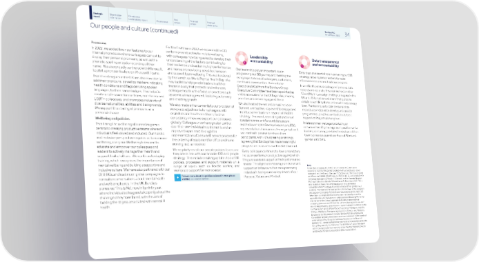Strategic Shareholder Climate and Risk Financial Financial Barclays PLC 34 report information sustainability report Governance review review statements Annual Report 2022 Our people and culture (continued) Pronouns For the first time in 2022 we expanded the DEI performance objective to include wellbeing, Leadership Data transparency In 2022, we added two new features to our with colleagues now being asked to develop their accountability and accountability internal phonebook where colleagues can opt to understanding of the factors contributing to display their personal pronouns, as well as the their resilience and sustaining high performance; phonetic spelling or audio recording of their Our leadership play an important role in Data plays an essential role in delivering our DEI and managers now being asked to champion name. We also proudly partnered with Microsoft, progressing our DEI journey and meeting the strategy, allowing senior leaders to make and support team wellbeing. This was bolstered to pilot a pronoun feature on Microsoft Teams. rising expectations of colleagues, customers, informed decisions and track our progress. by the launch, on World Mental Health Day, of a clients and communities. Accountable Branch colleagues in the UK are also now able to In an effort to ensure colleagues’ personal data new toolkit to help people leaders lead their Executives (AEs) from the Barclays Group add their pronouns, as well as markers indicating records are accurate, this year we held another teams in a way that protects and enhances Executive Committee have been appointed as health conditions and flags denoting spoken ‘Count Me In’ campaign, inviting colleagues in the colleague health with a focus on practices such visible advocates for the DEI agendas, shaping languages, to their name badges. This helps to UK and US to review and share their personal as workload management, fostering autonomy priorities and delivering against these. create a safe space for our trans, non-binary and details in our HR systems, in line with local privacy and enabling growth. LGBT+ colleagues, and promotes inclusivity of We also hosted the second annual Inclusion laws. Maintaining up to date personal data We also made enhancements to our provision of diverse nationalities, abilities and backgrounds. Summit, a virtual two-day event to engage and records also helps us to develop and update workplace adjustments for colleagues with We support the sharing of pronouns as a mobilise senior leaders in respect of the DEI programmes, practices and policies to best disabilities and health conditions, to drive personal choice. strategy. The event, consisting of a series of support colleagues at every level. consistency in how we support our colleagues speaker events and focused discussions, Wellbeing and policies In late summer, we began producing an globally. Colleagues now have greater control reached over 1,000 Barclays leaders and ERG enhanced monthly management pack for senior Prioritising the wellbeing of our colleagues is over their own individual requirements and an representatives from across the organisation. It leaders, containing a detailed breakdown of their central to creating productive teams where all improved experience through the was met with positive feedback from team's progress against our Race at Work and individuals feel valued and included. Our holistic implementation of a new self-service process for participants, with 71% agreeing or strongly gender ambitions. and inclusive perspective requires us to measure the ordering of equipment for office and home agreeing that Barclays has made meaningful wellbeing, using our Wellbeing Index and to working use, as required. progress on inclusion since the 2021 Summit. educate and empower our colleagues and We regularly revisit our people policies to ensure Every colleague continues to have a mandatory leaders to actively manage their health and they are in line with our broader DEI and people inclusion performance objective against which support that of others. We continue to deploy strategy. This includes making updates to our HR they are assessed as part of their performance training, which recognises the importance of policies, processes and support materials on a review. The objective encourages inclusive and mental wellbeing and building a supportive and Note range of topics such as flexible working and supportive behaviours that recognise every Under the Companies Act 2006 (the 'Companies Act'), Barclays is inclusive culture. We have also partnered with our workplace support for menopause. required to report on the gender breakdown of our employees, ‘senior individual’s background as key drivers of our DEI ERGs and leaders on global campaigns to managers’, and the Board of Barclays PLC's Directors. The Group’s global To learn more about the policies reviewed in 2022, please Purpose, Values and Mindset. workforce was 92,898 (50,967 male, 41,720 female, 211 unavailable), with normalise conversations about mental health + visit the Our Policies section. 432 senior managers (329 male, 103 female), and the Board of Barclays and wellbeing topics. In the UK, Barclays PLC had 13 directors (8 male, 5 female) as at 31 December 2022. This is on a headcount basis, including colleagues on long-term leave. pioneered ‘This is Me’, now in its ninth year, Unavailable refers to colleagues who do not record their gender in our where individual colleagues talk openly about the systems. The ‘male’ and ‘female’ gender splits disclosed in this paragraph are based on Companies Act disclosure requirements and numbers are challenges they have faced, with the aim of taken from our employee records which are maintained pursuant to tackling the stigma associated with mental ill applicable rules and regulations on employee record keeping. For further information on the Group’s approach to building a more inclusive health. company, please see our DEI 