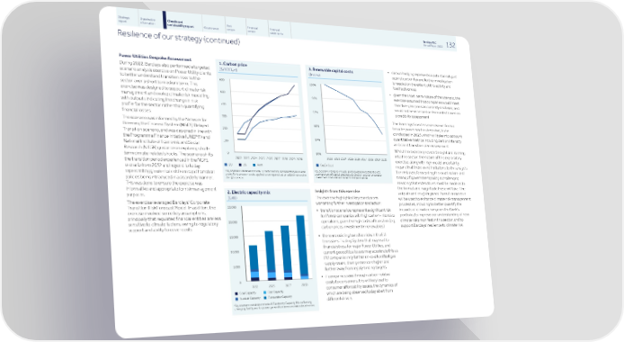 Strategic Shareholder Climate and Risk Financial Financial Barclays PLC 132 report information sustainability report Governance review review statements Annual Report 2022 Resilience of our strategy (continued) Power Utilities Bespoke Assessment • carbon hedging represents a potential mitigant 1.Carbon price 3.Renewable capital costs against carbon tax and further investigation During 2022, Barclays also performed a targeted ($/tCO e) (Index) 2 is needed on the extent of this activity and scenario analysis exercise on Power Utility clients its effectiveness 600 100% to better understand transition risks to the sector over a short to medium term. This • given the short-term nature of the scenario, the exercise was designed to support climate risk exercise assumed that companies would meet 500 96% management and evolve climate risk modelling, their five-year plans as currently disclosed, and with outputs indicating the change in risk would not be assessed or discounted based on 400 profile for the sector rather than quantifying 92% a credibility assessment financial losses. 300 The learnings from this exercise will form a The scenario was informed by the Network for 88% broader power sector deep dive, to be Greening the Financial System (NGFS) Delayed 200 conducted in 2023, which will take into account Transition scenario, and was designed in line with quantitative metrics including carbon intensity 84% the Programme Finance Initiative (UNEP FI) and and client transition plan assessment. 100 National Institute of Economic and Social Whilst the exercise provided insight and learning Research (NIESR) guidance on exploring short- 80% 0 into this sector, the nature of this exploratory term climate-related shocks. The scenario shifts 2022 2023 2024 2025 2026 2027 2028 2029 2030 2022 2023 2024 2025 2026 2027 2028 2029 2030 exercise, along with high model uncertainty, the transition period experienced in the NGFS CapEx Cost EU US RoW n means that there were limitations to the analysis. n n n scenario from 2032 and beyond to today, Key scenario variables include 3) Renewable Investment Cost, For instance, forecasting the exact nature and Key scenario variables include 1) Carbon Price, representing an overall representing greater tail risk from rapid transition a component of capital expenditure where marginal renewable proxy for transition costs applied to companies as an additional cost to timing of government policy is challenging, investment costs fall as the technologies mature. doing business. policies being introduced in a disorderly manner. meaning that estimations must be made as to This was done to ensure the exercise was the format and magnitude these will take. The informative and appropriate for risk management Insights from this exercise 2.Electric capacity mix outputs and insights gained from this exercise purposes. The exercise highlighted key conclusions (GW) will be used to enhance climate risk management The exercise leveraged Barclays' Corporate warranting further investigation and action: processes, including to better quantify the 25,000 Transition Risk Forecast Model. In addition, the impacts of climate change on the Bank's • transition scenarios represent a significant risk exercise involved some key assumptions, portfolio, to improve our understanding of how for Power companies with high carbon-intensive principally that regulated financial entities are less 20,000 climate risks manifest in this sector, and to operations, given the high costs of transition (e.g. sensitive to climate factors, owing to regulatory support Barclays' resilience to climate risk. carbon prices, investment in renewables) support and ability to cover costs. 15,000 • there are existing transition risks in the EU Emissions Trading System that may lead to financial stress for major Power Utilities, and 10,000 current geopolitical issues may accelerate this as EU companies rely further on coal to offset gas supply issues, driving emissions higher and 5,000 further away from legally binding targets • if companies pass through carbon-related 0 costs to consumers, this will likely lead to 2022 2025 2027 2030 consumer affordability issues, the dynamics of Coal Capacity Gas Capacity n n which are being observed today albeit from Nuclear Capacity Renewable Capacity n n different drivers Key scenario variables include 2) Electricity Capacity Mix, reflecting changing fuel types for power generation as economies decarbonise.