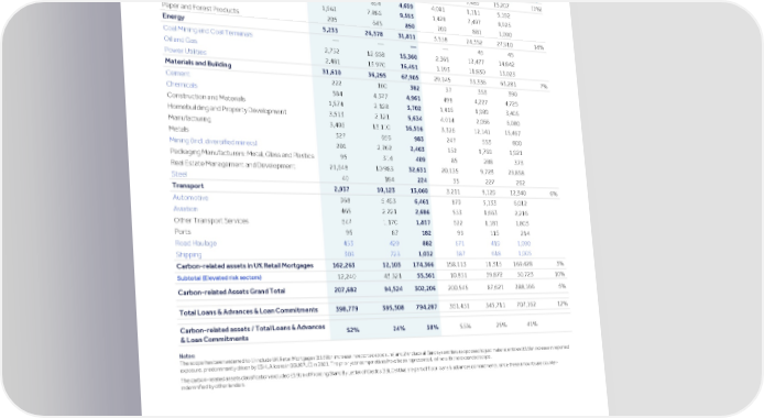 Strategic Shareholder Climate and Risk Financial Financial Barclays PLC 297 report information sustainability report Governance review review statements Annual Report 2022 Risk performance - Climate risk (continued) Carbon-related assets (Incl. sub-sector breakdown) 2022 2021 £m £m Loans & Loans & Loan advances Loan commitments Total advances commitments Total % Change Agriculture, Food and Forest Products 5,639 9,425 15,064 5,718 9,489 15,207 (1%) 3,765 894 4,659 4,081 1,111 5,192 Agriculture 1,669 7,886 9,555 1,428 7,497 8,925 Food, Bev and Tobacco 205 645 850 209 881 1,090 Paper and Forest Products Energy 5,233 26,578 31,811 3,558 24,352 27,910 14% — — — — 45 45 Coal Mining and Coal Terminals 2,752 12,608 15,360 2,365 12,477 14,842 Oil and Gas 2,481 13,970 16,451 1,193 11,830 13,023 Power Utilities Materials and Building 31,610 36,295 67,905 29,945 33,336 63,281 7% 222 160 382 37 353 390 Cement 584 4,377 4,961 498 4,227 4,725 Chemicals 1,574 2,128 3,702 1,416 1,989 3,405 Construction and Materials 3,513 2,121 5,634 4,014 2,066 6,080 Homebuilding and Property Development 3,406 13,110 16,516 3,326 12,141 15,467 Manufacturing 327 656 983 247 553 800 Metals 201 2,262 2,463 152 1,769 1,921 Mining (Incl. diversified miners) 95 314 409 85 288 373 Packaging Manufacturers: Metal, Glass and Plastics 21,648 10,983 32,631 20,135 9,723 29,858 Real Estate Management and Development 40 184 224 35 227 262 Steel Transport 2,937 10,123 13,060 3,211 9,129 12,340 6% 968 5,493 6,461 879 5,133 6,012 Automotive 465 2,221 2,686 553 1,663 2,216 Aviation 647 1,170 1,817 622 1,181 1,803 Other Transport Services 95 87 182 99 115 214 Ports 453 429 882 671 419 1,090 Road Haulage 309 723 1,032 387 618 1,005 Shipping Carbon-related assets in UK Retail Mortgages 162,263 12,103 174,366 158,113 11,315 169,428 3% Subtotal (Elevated risk sectors) 12,240 43,321 55,561 10,851 39,872 50,723 10% Carbon-related Assets Grand Total 207,682 94,524 302,206 200,545 87,621 288,166 5% Total Loans & Advances & Loan Commitments 398,779 395,508 794,287 361,451 345,711 707,162 12% Carbon-related assets / Total Loans & Advances 52% 24% 38% 55% 25% 41% & Loan Commitments Notes: The scope has been widened to 1) include UK Retail Mortgages (£169bn increase in reported exposure) and 2) include all Barclays entities as opposed to just material entities (£15bn increase in reported exposure, predominantly driven by ESHLA loans in BBUKPLC) in 2021. The prior year comparatives have been represented, in line with the expanded scope. The carbon-related assets classification excluded £5.9bn of Fronting Stand By Letter of Credits (SBLCs) that are part of Total loans & advances commitments, since these amounts are counter- indemnified by other lenders.