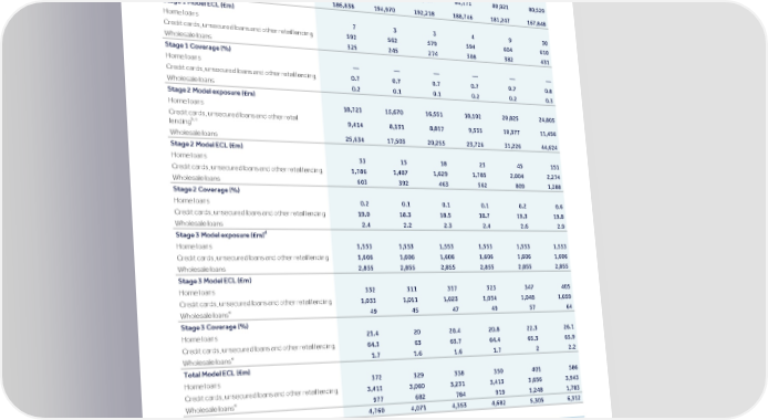 Strategic Shareholder Climate and Risk Financial Financial Barclays PLC 323 report information sustainability report Governance review review statements Annual Report 2022 Risk performance - Credit risk (continued) Scenarios a As at 31 December 2022 Weighted Upside 2 Upside 1 Baseline Downside 1 Downside 2 Stage 1 Model exposure (£m) Home loans 144,701 147,754 146,873 145,322 142,599 138,619 Credit cards, unsecured loans and other retail 81,329 81,772 81,457 81,171 80,921 80,529 b, c lending Wholesale loans 186,838 194,970 192,218 188,746 181,247 167,848 Stage 1 Model ECL (£m) Home loans 7 3 3 4 9 30 Credit cards, unsecured loans and other retail lending 592 562 579 594 604 610 Wholesale loans 325 245 274 308 382 431 Stage 1 Coverage (%) Home loans — — — — — — Credit cards, unsecured loans and other retail lending 0.7 0.7 0.7 0.7 0.7 0.8 Wholesale loans 0.2 0.1 0.1 0.2 0.2 0.3 Stage 2 Model exposure (£m) Home loans 18,723 15,670 16,551 18,102 20,825 24,805 Credit cards, unsecured loans and other retail 9,414 8,131 8,817 9,535 10,377 11,456 b, c lending Wholesale loans 25,634 17,503 20,255 23,726 31,226 44,624 Stage 2 Model ECL (£m) Home loans 33 15 18 23 45 151 Credit cards, unsecured loans and other retail lending 1,786 1,487 1,629 1,785 2,004 2,274 Wholesale loans 603 392 463 562 809 1,288 Stage 2 Coverage (%) Home loans 0.2 0.1 0.1 0.1 0.2 0.6 Credit cards, unsecured loans and other retail lending 19.0 18.3 18.5 18.7 19.3 19.8 Wholesale loans 2.4 2.2 2.3 2.4 2.6 2.9 d Stage 3 Model exposure (£m) Home loans 1,553 1,553 1,553 1,553 1,553 1,553 Credit cards, unsecured loans and other retail lending 1,606 1,606 1,606 1,606 1,606 1,606 Wholesale loans 2,855 2,855 2,855 2,855 2,855 2,855 Stage 3 Model ECL (£m) Home loans 332 311 317 323 347 405 Credit cards, unsecured loans and other retail lending 1,033 1,011 1,023 1,034 1,048 1,059 e Wholesale loans 49 45 47 49 57 64 Stage 3 Coverage (%) Home loans 21.4 20 20.4 20.8 22.3 26.1 Credit cards, unsecured loans and other retail lending 64.3 63 63.7 64.4 65.3 65.9 e Wholesale loans 1.7 1.6 1.6 1.7 2 2.2 Total Model ECL (£m) Home loans 372 329 338 350 401 586 Credit cards, unsecured loans and other retail lending 3,411 3,060 3,231 3,413 3,656 3,943 e Wholesale loans 977 682 784 919 1,248 1,783 Total ECL 4,760 4,071 4,353 4,682 5,305 6,312 £m Reconciliation to total ECL Total weighted model ECL 4,760 e ECL from individually assessed impairments 434 ECL from non-modelled exposures and others 456 ECL from post model management adjustments 525 Of which: ECL from economic uncertainty adjustments 317 Total ECL 6,175 Notes a Model exposures are allocated to a stage based on an individual scenario rather than a probability-weighted approach, as required for Barclays reported impairment allowances. As a result, it is not possible to back solve the final reported weighted ECL from individual scenarios given balances may be assigned to a different stage dependent on the scenario. b For Credit cards, unsecured loans and other retail lending, the model exposure movement between stages 1 and 2 across scenarios differs due to additional impacts from the undrawn exposure. c For Credit cards, unsecured loans and other retail lending, the dispersion of results around Baseline has narrowed following model enhancements made during the year. d Model exposures allocated to Stage 3 does not change in any of the scenarios as the transition criteria relies only on an observable evidence of default as at 31 December 2022 and not on macroeconomic scenario. e Material wholesale loan defaults are individually assessed across different recovery strategies. As a result, ECL of £434m is reported as an individually assessed impairment in the reconciliation table.