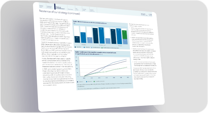 Strategic Shareholder Climate and Risk Financial Financial Barclays PLC 129 report information sustainability report Governance review review statements Annual Report 2022 Resilience of our strategy (continued) Barclays participated in the Bank of England’s Barclays has developed its approach and Banks' climate losses as a result of counterfactual losses Climate Biennial Exploratory Scenario (CBES) in methodologies, including: (%) 2021, which was a first phase. The bank also took • refining corporate transition risk modelling by part in the second phase of the CBES exercise in sourcing additional datasets on company 60 35 64 100 65 100 — — 2022. These exercises were exploratory and 95 95 emissions and transition plans, while factoring 55 designed to assess financial institutions' in sector-specific dynamics that the transition capabilities and preparedness for dealing with will pose 65 financial and economic shocks stemming from • enhancing corporate physical risk modelling, climate risks. The CBES exercise was a a key area of focus across the industry given significant undertaking for the bank, requiring a 40 36 35 35 the challenges it poses, by incorporating material uplift in our climate risk quantification additional physical risk considerations such capabilities and approaches. as knock-on geopolitical impacts and The ECB Climate Risk Stress Test (CRST), held in Mortgages Consumer credit Wholesale supply chain disruptions 2022, was an exploratory exercise designed to Early action Late action No additional action No additional action (illustrative adjustment) test climate stress testing capabilities and assess n n n n • developing methodologies for a wide range the financial resilience of participating banks. of climate transmission channels for mortgage Both CBES and CRST were learning exercises for assets, at a high resolution of granularity, Banks’ total losses in the transition scenarios versus expected losses both supervisors and financial institutions and across physical risk hazards such as flood, in hypothetical counterfactual scenario ($bn ) without direct implications on the capital subsidence, coastal flooding and storm, requirements for the supervised banks. and transition risks including EPC costs and 250 energy prices In 2022, Barclays performed a sector-specific 200 scenario analysis exercise to understand the • further incorporating these methodological impact of transition risks to the specific sectors approaches and enhancements into Climate over the short and medium term. The details of 150 Risk Management processes and frameworks. these exercises are covered in the next sections. Throughout 2022, Barclays have built on these 100 In 2022, and considering learnings from CBES learnings to inform our vision and plan for Phase 1, Barclays has further developed undertaking climate scenario analysis exercises. 50 understanding and use of climate scenario As our capabilities for scenario analysis evolve analysis by performing deep dives on available and mature, we expect these to increasingly 0 third-party climate scenarios, benchmarking inform the financial planning process and 2020 2025 2030 2035 2040 2045 2050 internal climate methodologies and approaches business strategy. to industry practice, and developing a consistent Late action Early action Counterfactual scenario n n n approach for the development of climate models across asset classes. The size of the losses published by the Bank of England here broadly aligned to those Barclays estimated from the exercise. Source: https://www.bankofengland.co.uk//2022/results-of-the-2021-climate-biennial-exploratory-scenario