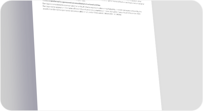 Strategic Shareholder Climate and Risk Financial Financial Barclays PLC 505 report information sustainability report Governance review review statements Annual Report 2022 Notes to the financial statements (continued) Scope of consolidation specific to the circumstances of each loan with additional guarantees and collateral sought from the sponsor of the structured entity for certain arrangements. During the period the Group incurred an impairment of £32m (2021: £28m) against such facilities. Other This includes fair value loans with structured entities where the market risk is materially hedged with corresponding derivative contracts, interests in debt securities issued by securitisation vehicles and drawn and undrawn loan facilities to these entities. In addition, other includes investment funds with interests restricted to management fees based on performance of the fund and trusts held on behalf of beneficiaries with interests restricted to unpaid fees. Assets transferred to sponsored unconsolidated structured entities Barclays is considered to sponsor another entity if: it had a key role in establishing that entity, it transferred assets to the entity, the Barclays name appears in the name of the entity or it provides guarantees on the entity’s performance. As at 31 December 2022, assets transferred to sponsored unconsolidated structured entities were £1,665m (2021: £1,662m).