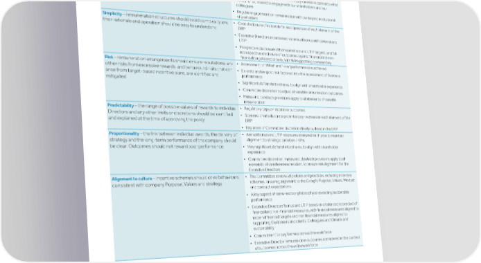 Strategic Shareholder Climate and Risk Financial Financial Barclays PLC 206 report information sustainability report Governance review review statements Annual Report 2022 Remuneration report (continued) Alignment with Provision 40 of the UK Corporate Governance Code Code requirements How the Committee has addressed the requirement • A clear remuneration philosophy with aligned policies and practices for Clarity – remuneration arrangements should be transparent and Executive Directors and the wider workforce promote effective engagement with shareholders and the • Our Fair Pay Report, which sets out how pay fairness is central to what workforce we stand for, is used to engage with our shareholders and our colleagues • Regular engagement on remuneration with our largest institutional shareholders • Clear disclosure of rationale for and operation of each element of the Simplicity – remuneration structures should avoid complexity and DRP their rationale and operation should be easy to understand • Executive Directors incentivised via annual bonus with deferral and LTIP • Prospective disclosure of bonus metrics and LTIP targets, and full retrospective disclosure of outcomes against financial and non- financial targets and criteria, with full supporting commentary • Assessment of 'What' and 'How' performance is achieved Risk – remuneration arrangements should ensure reputational and other risks from excessive rewards, and behavioural risks that can • Ex-ante and ex-post risk factored into the assessment of business performance arise from target-based incentive plans, are identified and mitigated • Significant deferral into shares, to align with shareholder experience • Committee discretion to adjust all variable remuneration outcomes • Malus and clawback provisions apply to all elements of variable remuneration • Regulatory caps on incentive outcomes Predictability – the range of possible values of rewards to individual Directors and any other limits or discretions should be identified • Scenario charts illustrate potential pay-outs under each element of the DRP and explained at the time of approving the policy • Key areas of Committee discretion clearly outlined in the DRP • Annual bonus and LTIP measures reviewed each year to maintain Proportionality – the link between individual awards, the delivery of alignment to strategic priorities / KPIs strategy and the long-term performance of the company should • Very significant deferral into shares, to align with shareholder be clear. Outcomes should not reward poor performance experience • Committee discretion, malus and clawback provisions apply to all elements of variable remuneration, to ensure risk alignment for the Executive Directors • The Committee reviews all policies and practices, including incentive Alignment to culture – incentive schemes should drive behaviours schemes, ensuring alignment to the Group's Purpose, Values, Mindset consistent with company Purpose, Values and strategy and conduct expectations • A key aspect of remuneration philosophy is rewarding sustainable performance • Executive Directors' bonus and LTIP based on a balanced scorecard of financial and non-financial measures, with financial measures aligned to external financial targets and non financial measures aligned to supporting Customers and clients, Colleagues and Climate and sustainability • Commitment to pay fairness across the workforce • Executive Director remuneration outcomes considered in the context of outcomes across the wider workforce