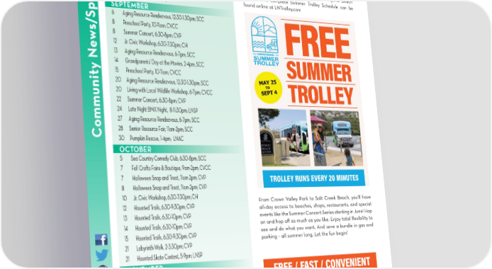 ts CALENDAR OF EVENTS Laguna Niguel Trolley Program Summer Concerts Special E AUGUST Seeking sun and fun this summer? Ready to get out of Keep Summer going with the City of Laguna Niguel’s Concert en the house? The Laguna Niguel Summer Trolley will return Series! Join us at the Amphitheater at Crown Valley Park for v 11 Summer Concert, 6:30-8pm; CVP to service starting on May 25 and will run through Labor a rockin’ good time. Food and dessert will be available for 18 Movie in the Park, 7:30pm; CVP Day. Service is free and is o昀昀ered Thursday-Sunday, with purchase from gourmet food trucks. 25 Sea Country Festival, 5-10pm connections to the free Dana Point and Laguna Beach Free shuttle service will be available at City Hall on 26 Sea Country Festival, 2-10pm trolleys. The complete Summer Trolley Schedule can be concert nights from 5:30-9:30pm. v 27 Sea Country Festival, 12-8pm found online at LNTrolley.com en SEPTEMBER 6 Aging Resource Rendezvous, 12:30-1:30pm; SCC Celebrate summer fun with this year’s Sea Country 90’s Rock Show ts Special E 8 Preschool Party, 10-11am; CVCC Festival! Friday, September 8 s/ 8 Summer Concert, 6:30-8pm; CVP 6:30-8:00pm w The City of Laguna Niguel’s Park and Recreation Department e 12 Jr. Civic Workshop, 6:30-7:30pm; CH will be hosting a 3-day festival starting Friday, August 25 Twisted Gypsy 13 Aging Resource Rendezvous, 6-7pm; SCC through Sunday, August 27! Friday, September 22 14 Grandparents’ Day at the Movies, 2-4pm; SCC Bring your friends and family to experience this end-of- 6:30-8:00pm 15 Preschool Party, 10-11am; CVCC summer event with music, rides, games, food, and much 20 Aging Resource Rendezvous, 12:30-1:30pm; SCC more! This is a free entry event with a few nominal fees for attractions and food available for purchase. 20 Living with Local Wildlife Workshop, 6-7pm; CVCC Pre-sale wristbands will go on sale starting Tuesday, August 1 22 Summer Concert, 6:30-8pm; CVP through Thursday, August 24 at $35 each. Tickets can be purchased Pumpkin Patch Preschool Party 24 Late Night BMX Night, 8-11:30pm; LNSP at Crown Valley Community Center from Monday through Friday Join us for a parent and me preschool party this 27 Aging Resource Rendezvous, 6-7pm; SCC from 8:00am-5:00pm. Wristbands include rides only. Game tickets September! This one-hour fall themed party will include ommunity N 28 Senior Resource Fair, 11am-2pm; SCC and food to be sold separately. a craft, song, story-time, snack, and special visit from Location: 23804 EL Lazo (El Lazo & Dorine) a fairytale friend! Parent/Guardian participation C 30 Pumpkin Rescue, 1-4pm; LNAC required. Check out our Facebook and Instagram pages OCTOBER @CityofLagunaNiguel and visit our website at Location: Crown Valley Community Center, Crown Ballroom 5 Sea Country Comedy Club, 6:30-8pm; SCC www.CityofLagunaNiguel.org for more information. 15159 Fri Sept 15 10:00am-11:00am 3-5 years $10 7 Fall Crafts Faire & Boutique, 9am-2pm; CVCC F Aug 25 5-10pm Free Admission 7 Halloween Snap and Treat, 11am-2pm; CVP Sa Aug 26 2-10pm Free Admission Pumpkin Rescue 8 Halloween Snap and Treat, 11am-2pm; CVP Su Aug 27 12-8pm Free Admission The Laguna Niguel Aquatics Center PUMPKIN 10 Jr. Civic Workshop, 6:30-7:30pm; CH Sea Country Festival’s Main Stage Entertainment RESCUE! Kicks o昀昀 the Halloween season! Admission 12 Haunted Trails, 6:30-9:30pm; CVP From Crown Valley Park to Salt Creek Beach, you’ll have includes rescuing your very own pumpkin from the all-day access to beaches, shops, restaurants, and special The Su昀昀ragettes 昀氀oating pumpkin patch. Participants can then swim 13 Haunted Trails, 6:30-10pm; CVP events like the Summer Concert Series starting in June! Hop with their pumpkin, before decorating. The in昀氀atable 14 Haunted Trails, 6:30-10pm; CVP on and hop o昀昀 as much as you like. Enjoy total 昀氀exibility to Friday, August 25 side (8+ years and older) will be out, diving board open, see and do what you want. And save a bundle in gas and 8:00pm music, fall themed sel昀椀e cut outs and a food truck! 15 Haunted Trails, 6:30-9:30pm; CVP parking – all summer long. Let the fun begin! Information: (949) 425-5100/Location: LNAC 21 Labyrinth Walk, 2-3:30pm; CVP 15160 Sa Sept 30th 1 – 4pm 21 Haunted Skate Contest, 5-9pm; LNSP 80’z All-Stars NOVEMBER Saturday, August 26 2 Speed Friending, 1-2:30pm; SCC 8:00pm 2 Dog Bite Prevention Workshop, 6-7pm; CVCC 11 Veterans’ Day Celebration, 11am-12:30pm; SCC For map and information visit 14 Jr. Civic Workshop, 6:30-7:30pm; CH No Duh 15 Wellness Wednesday Workshop, 6-7pm; CVCC Sunday, August 27 18 Inclusive Dance, 5-7pm; CVCC 6:30pm PARKS & RECREATION OFFICE: (949) 425-5100 PARKS & RECREATION OFFICE: (949) 425-5100 | | 6 ONLINE REGISTRATION: CityofLagunaNiguel.org/Registration REGISTRATION FORM: Page 32 ONLINE REGISTRATION: CityofLagunaNiguel.org/Registration REGISTRATION FORM: Page 32 7