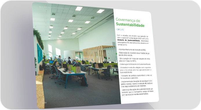 RELATÓRIO DE SUSTENTABILIDADE 2022 Governança de Sustentabilidade GRI 2-13 Com o objetivo de ampliar sua geração de valor, a green4T conta desde 2020 com uma Diretoria de Sustentabilidade, responsável pela agenda ESG da Companhia, atuando em temas como: • Acompanhamento de indicadores ESG; • Elaboração do inventário de emissões de ga- ses do efeito estufa; • Estruturação de metas de redução de emis- sões (com base no SBTi); • Elaboração do Relatório de Sustentabilidade; • Estabelecimento de relações com organiza- ções e iniciativas externas que promovem a sustentabilidade; • Fomento de práticas sustentáveis entre os fornecedores e parceiros ; • Implementação de ações de reciclagem e lo- gística reversa, visando à redução de resíduos e ao reaproveitamento de materiais; • Liderança das ações de sustentabilidade, ga- rantindo que a Companhia esteja alinhada com as expectativas dos stakeholders. 34