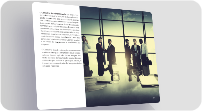 RELATÓRIO DE SUSTENTABILIDADE 2022 O Conselho de Administração é o órgão má- ximo diretivo da empresa, de deliberação cole- giada, responsável pela supervisão da gestão dos Diretores e pelo estabelecimento das polí- ticas gerais da Companhia. Suas decisões são tomadas pela maioria dos votos dos membros presentes à reunião e ele é composto por três membros, nomeados pela assembléia de acio- nistas com mandato de três anos. O Presiden- te do Conselho possui mandato de 1 ano, não sendo permitida a recondução, sendo possível o acúmulo de função com a Presidência da empresa. O Conselho de Administração expressamen- te determina que a empresa e seus colabo- radores devem agir de forma íntegra, ho- nesta e dentro da legalidade, pautando suas atividades por valores e princípios éticos, e impedindo a ocorrência de irregularidades em seus negócios. 27