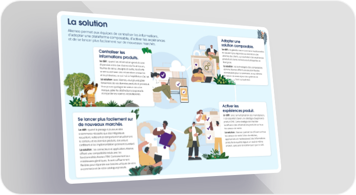 La solution Akeneo permet aux équipes de centraliser les informations, Adopter une d’adopter une plateforme composable, d’activer les expériences solution composable. et de se lancer plus facilement sur de nouveaux marchés. Le défi : les plateformes e-commerce traditionnelles ne peuvent plus répondre aux évolutions des Centraliser les attentes des clients, qui souhaitent des expériences produits et clients immersives et attrayantes en informations produits. tout point. Le défi : quand les informations produits sont La solution : les technologies dites composables dispersées entre des dizaines de fournisseurs, comme Akeneo offrent une solution flexible feuilles de calcul, équipes et outils, les clients et modulaire pour le commerce, ce qui élimine se retrouvent avec des informations inexactes le besoin de mises à jour des systèmes de et incohérentes, ce qui nuit à l’expérience d’achat. front ou back-end. La solution : avec Akeneo, vous pouvez gérer l’ensemble de vos données produits et processus. Vous pouvez partager les valeurs de votre marque, gérer les déclinaisons de produits et respecter les normes internationales. Activer les expériences produit. Le défi : avec la multiplication des marketplaces, Se lancer plus facilement sur il est essentiel d’avoir une stratégie d’expérience de nouveaux marchés. produit (PX). Cette stratégie doit faciliter la diffusion des informations produits sur tous Le défi : quand le passage à plusieurs sites les canaux de vente. e-commerce nécessite que des intégrateurs La solution : Akeneo permet de diffuser sur tous recueillent, nettoient et réimportent manuellement les canaux de vente (sites de retailers, le contenu et les données produits, des erreurs applications et marketplaces) des informations s’infiltrent et les implémentations prennent du retard. produits de qualité depuis un seul et même La solution : les connecteurs et applications Akeneo endroit, sans avoir à recréer quoi que ce soit. offrent une compatibilité totale avec les fonctionnalités Akeneo PIM. Contrairement aux middlewares génériques, ils sont suffisamment flexibles pour répondre aux besoins uniques de votre e-commerce et de votre catalogue produits.