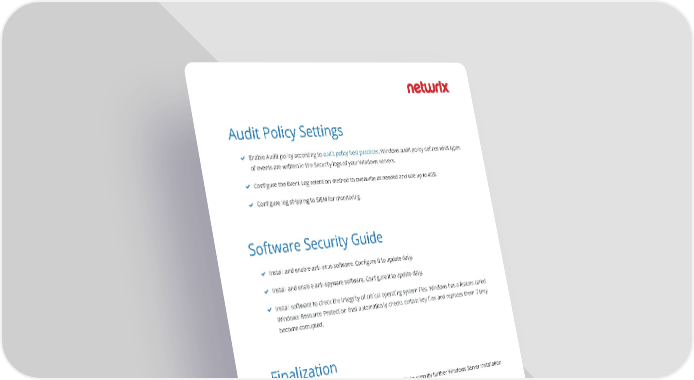 Audit Policy Settings Enable Audit policy according to audit policy best practices. Windows audit policy defines what types of events are written in the Security logs of your Windows servers. Configure the Event Log retention method to overwrite as needed and size up to 4GB. Configure log shipping to SIEM for monitoring. Software Security Guide Install and enable anti-virus software. Configure it to update daily. Install and enable anti-spyware software. Configure it to update daily. Install software to check the integrity of critical operating system files. Windows has a feature called Windows Resource Protection that automatically checks certain key files and replaces them if they become corrupted. Finalization Make an image of each OS using GHOST or Clonezilla to simplify further Windows Server installation and hardening. Enter your Windows Server 2016/2012/2008/2003 license key. Enter the server into the domain and apply your domain group policies. 8