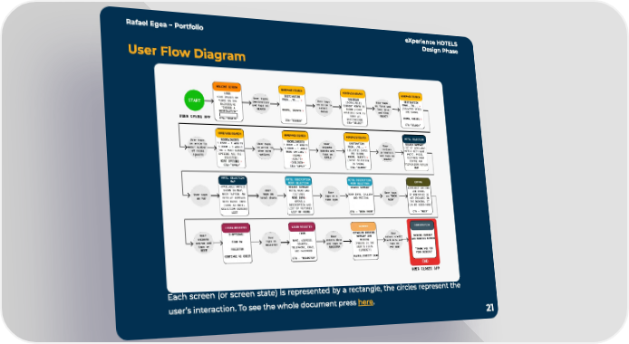 Rafa el Egea ~ Por tfolio eXperien ce HOTELS Design Phase 21 User Flow Dia gram Ea ch screen (or screen state) is represented by a rec tan gle, th e circles represent th e user ’s intera c tion. To see th e wh ole docum ent press . h ere