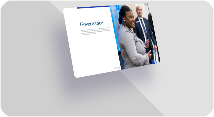 Governance We are committed to setting high standards in our business activities and with our stakeholders. Our gov- ernance structures are designed to promote accountability, transparency and ethical behavior consistent with our corporate standards and Business Principles. We regularly evaluate and enhance our governance structures, processes and controls, as appropriate. The Firm’s governance structures help to monitor progress toward 50 key commitments and targets.