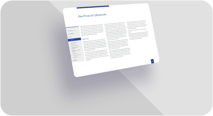 Data Privacy & Cybersecurity As digital solutions play an ever-larger role in fnancial services and the economy as Data protection and privacy are key components of our global data risk manage- We have established processes and procedures to report and respond to suspected a whole, the risk of cyber-attacks and other threats to information security contin- ment program. That program focuses on execution of the compliance and opera- or actual data privacy incidents that may compromise the confdentiality, integrity INTRODUCTION ues to evolve and grow. In addition, the individuals with whom the Firm interacts tional risk oversight of data management and privacy governance, controls, and or availability of personal information and provide our employees the ability to expect that our data practices are safe and lawful. Data privacy and cybersecurity remediation activities in the Firm. The Firm’s privacy framework outlines roles and make reports through our internal systems. Our centralized process requires escala- ENVIRONMENTAL therefore remain top priorities for our Firm. At the same time, greater reliance on responsibilities, sets policies and standards, directs advisory requests, and provides tion to a dedicated incident response team for severity assessment, mitigation, root remote work given our hybrid working model has only further underscored the protocols for monitoring, reporting, and escalation of key privacy risks and issues. cause analysis and corrective action. SOCIAL importance of safe digital solutions and data practices. The program reports periodically to our management, including our OC and Board In accordance with the Firm's policies, we notify individuals and our regulators of of Directors. Our multi-stakeholder approach to oversight and governance is embed- data incidents. GOVERNANCE Data Privacy ded in our three lines of defense and supported by dedicated data and privacy teams around the world. We provide regular training and awareness to our work- JPMorgan Chase regularly engages with lawmakers and civil society on policy issues force, not only on core privacy obligations and how to meet them, but also on related to data protection and privacy, including the development and moderniza- Corporate Governance & As a global fnancial institution, our Firm collects, processes, uses, shares and dis- ESG Oversight emerging risks, trends and new developments. tion of U.S. federal and state privacy laws. We will continue to support policy that positions all manner of personal and fnancial information every day, and we have protects people and their personal information, promotes organizational account- Stakeholder Engagement processes designed to manage that data in accordance with the laws, rules and reg- Information on how we collect, process, use, share and disposition personal infor- ability and enables benefcial data-driven innovation. Political Engagement and ulations of the jurisdictions in which we operate. We take a multi-faceted approach mation, as well as rights that individuals may have with respect to their personal Public Policy to addressing privacy and data protection risks, including maintaining and evolving information and how to exercise them, is available on our websites and upon Managing Environmental and our internal controls, establishing policies covering all stages of the data lifecycle request through multiple channels. In addition to traditional privacy notices, we Social Risks and deploying appropriate technology. often publish related materials such as frequently asked questions and tips for Human Rights keeping personal fnancial information safe. Our Firmwide internal policy on personal information applies globally to our legal Data Privacy & Cybersecurity entities, as well as third parties that handle personal information on our behalf. We have a wide range of technological, administrative, organizational and physical Business Ethics The policy sets forth minimum requirements, including that personal information is security measures designed to safeguard the confdentiality, integrity and availabil- processed for defned purposes. The policy also specifes the use of privacy by ity of personal information. Our Code of Conduct and related policies include spe- APPENDICES design principles, designed to ensure that privacy is taken into account throughout cifc guidelines on how employees should protect the confdential information of the data lifecycle. those we have relationships with, including consumers, employees, service provid- ers, commercial businesses or government bodies. 57