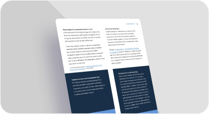 CLIMATE TRANSITION Partnerships & Commercial Initiatives in India China’s Path to Net Zero India is the world’s third-largest energy consuming country, China has pledged to achieve net zero carbon by 2060. driven by rising incomes and improving standards of living. China’s commitment represents nearly half of global Energy use has doubled since 2000, with 80% of demand emissions and two-thirds of the global emissions from still being met by coal, oil, and solid biomass¹. countries that have pledged to net zero. Reducing carbon emissions could transform China’s economy and critically India’s clean energy transition could demonstrate to the advance global net zero goals. world that robust economic expansion can be compatible with emission reduction and achievement of other Through our Carbonomics — China Net Zero: The Clean development goals. As new industrial sectors emerge and Tech Revolution report, we modeled the country’s potential clean energy jobs grow, the country will need to ensure path to net zero by sector and technology, laying out $16 that no one is left behind, including regions that are heavily trillion of clean-tech infrastructure investments by 2060 that dependent on coal today. could create 40 million net-new jobs and drive large-scale 1—International Energy Agency: “India Energy Outlook 2021: World economic growth. Energy Outlook Special Report,” February 2021. Climate Innovation and Development Fund The Green Finance Working Group The Climate Innovation and Development Fund Goldman Sachs, together with the China-based will tackle investment opportunities with direct, International Finance Forum (IFF), launched a measurable, and positive climate-related outcomes Green Finance Working Group in December 2021. in the most carbon-intensive areas across India, Co-chaired by John Waldron, President and Chief including sustainable transport. Operating O昀케cer of Goldman Sachs, and Zhu Xian, Vice President and Secretary-General of the IFF, the group will facilitate dialogue on climate action among senior executives from global corporations and researchers from leading institutions to push forward a solutions-focused dialogue on how best to leverage green 昀椀nance and capital markets as key tools to mitigate climate change and transition to a low-carbon economy. Climate Finance Leadership Initiative (CFLI) The CFLI is an industry-led initiative to unlock private capital to help 昀椀nance the low-carbon transition in emerging markets. CLFI has piloted a Goldman Sachs Asia Paci昀椀c Sustainability program to strengthen the enabling environment for Conference 2021 the climate transition in India and accelerate private Goldman Sachs hosted an inaugural Asia Paci昀椀c capital to drive this transition. We are a founding Sustainability Conference last year to help advance member of this pilot, and through collaboration regional dialogue on this key area of focus. with the government of India, the multilateral community, and local stakeholders, CFLI India will Singapore Green Finance Center (SGFC) seek to accelerate 昀椀nancing for opportunities in We continue our support and partnership with the enabling infrastructure for renewables; water and SGFC, Singapore’s 昀椀rst research institute dedicated waste infrastructure for a circular economy; scaling to green 昀椀nance and talent development for Asia. The electric mobility and charging infrastructure; and only US bank among SGFC’s founding members, we innovations for decarbonizing di昀케cult-to-abate now serve on the Advisory Board, contributing our Sustainability Report 2021 Climate Transition | Meeting the Net Zero Challenge in Asia insights to help guide strategic direction. 4040 sectors, including hydrogen.