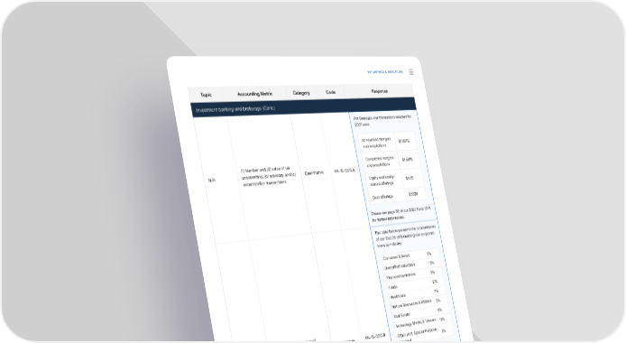 KEY METRICS & INDICATORS Topic Accounting Metric Category Code Response Investment banking and brokerage (Cont.) Per Dealogic, our transaction volumes for 2021 were: Announced mergers $1,851B and acquisitions (1) Number and (2) value of (a) Completed mergers $1,581B N/A underwriting, (b) advisory, and (c) Quantitative FN-IB-000.A and acquisitions securitization transactions Equity and equity- related o昀昀erings $141B Debt o昀昀erings $332B Please see page 68 of our 2021 Form 10-K for further information. The table below presents the concentration of our $55.9B of 昀椀rmwide gross corporate loans by industry: Consumer & Retail 8% Diversi昀椀ed Industrials 13% Financial Institutions 8% Funds 21% Healthcare 7% Natural Resources & Utilities 9% Real Estate 8% (1) Number and (2) value of Technology, Media, & Telecom 18% N/A proprietary investments and loans Quantitative FN-IB-000.B Other (incl. Special Purpose by sector Vehicles) 8% The table below presents the asset class breakdown of our $18.9B of equity securities at fair value (substantially all reported within our Asset Management and Investment Banking segments): Corporate 78% Real Estate 22% For further information about loans and investments, please see pages 110 and 149, respectively, of our 2021 Form 10-K. SSuussttaaiinnaabbiilliittyy Re Reppoorrtt 2 2002121 KKeey My Meettrriiccs & Is & Innddiiccatatoorrs | Ss ASB Index 105