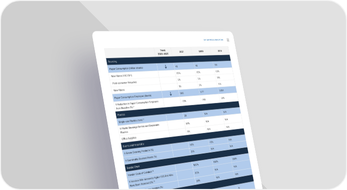 KEY METRICS & INDICATORS Trend 2021 2020 2019 2020-20211 Sourcing Paper Consumption (million sheets) 42 48 139 New Fibers (FSC/SFI) 96% 92% 66% Post-consumer Recycled 3% 5% 19% New Fibers 1% 3% 15% Paper Consumption/Employee (sheets) 965 1,177 3,634 ◊ Reduction in Paper Consumption/Employee -79% -74% -21% from Baseline (%) 3 Plastics Single-use Plastics (tons) 11 28 N/A N/A ◊ Plastic Beverage Bottles and Disposable 95% N/A N/A Plastics O昀케ce Supplies 5% N/A N/A Events and Hospitality ◊ Green Cleaning Products (%) 40% 43% N/A ◊ Sustainably Sourced Foods (%) 21% N/A N/A Supply Chain 12 Vendor Code of Conduct 100% 100% 100% ◊ Vendors With Inherently Higher ESG Risk Who 60% N/A N/A Have Been Assessed (%) 13 ◊ Spend With Diverse Vendors (%) 26% N/A N/A CDP Climate Change Survey: Score A- A A- Climate Change Survey: Leadership Recognition 14 SER A List A List / SER A List SER A List Note 1: Many metrics trending upward from 2020 to 2021 are primarily due to lifting COVID-19 restrictions and employees returning to the o昀케ce. Note 3: This symbol ◊ before an indicator denotes an environmental commitment through Goldman’s 2025 ESG and Net Zero Commitments and ongoing 2020 Operational Commitments. Net Emissions noted as zero represents achievement of the 昀椀rm’s carbon neutral commitment across operations and business travel. Reductions are from a 2017 baseline, except plastics which are from a 2021 baseline or where otherwise noted. Note 11: 2021 is the new baseline year for single-use plastic since data boundary has increased and data collection has improved. Note 12: All newly onboarded vendors must attest to the Vendor Code of Conduct. All vendors are screened for inherent ESG risks. Note 13: All vendors who we deem to have an inherently higher ESG risk and are over our material spend threshold are now required to complete an ESG questionnaire within 60 days of onboarding. Note 14: In 2019, 2020, and 2021, the 昀椀rm’s CDP response was recognized for leadership as part of CDP’s Supplier Engagement Rating (SER). Historical data points may be adjusted to re昀氀ect new information and/or changes to protocols. SSuussttaaiinnaabbiilliittyy Re Reppoorrtt 2 2002121 KKeey My Meettrriiccs & Is & Innddiiccatatoorrs | Es nvironmental Indicators 97